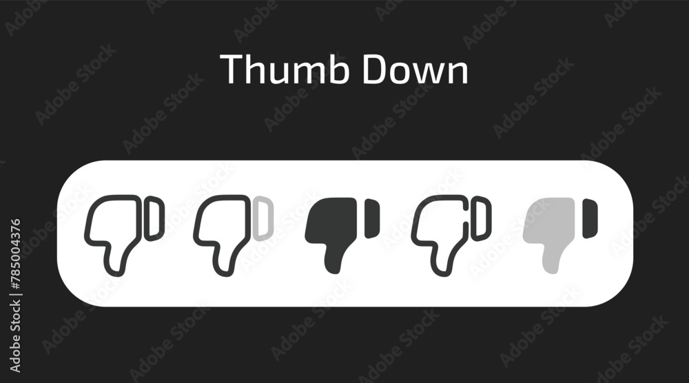 Thumb Down or dislike icons in 5 different styles as vector #785004376