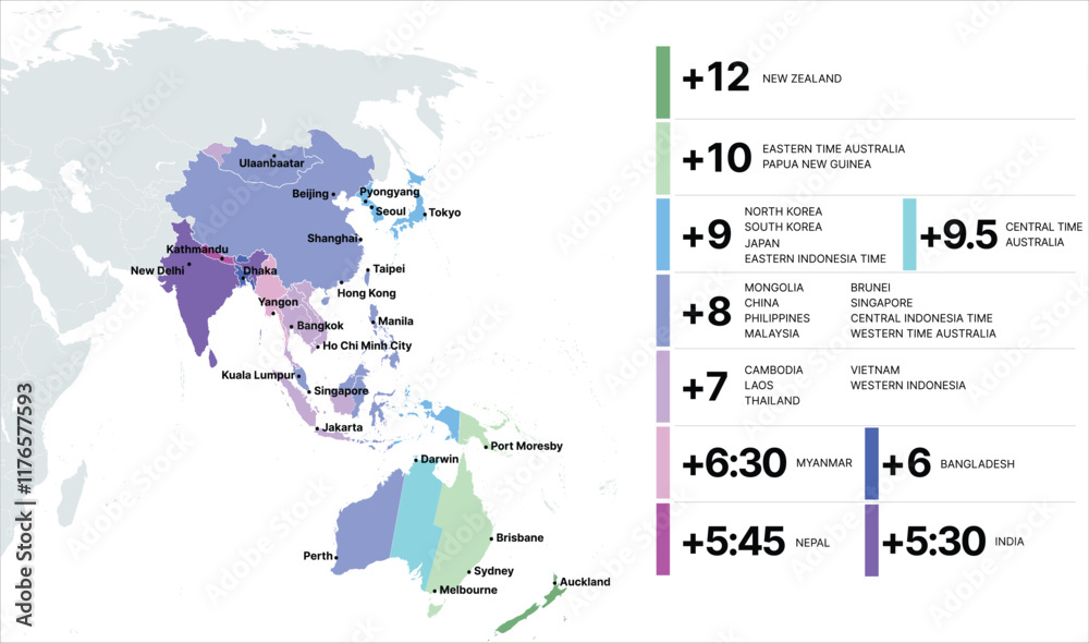 Time Zone Map Asia Pacific, Timezone Map, Asia Cities Timezone, Australia Time, Aisa Time #1176577593