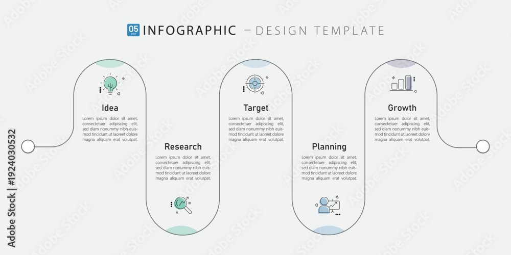 Timeline Creator infographic template. 5 Step timeline journey, calendar Flat simple infographics design template. presentation graph. Business concept with 5 options, gantt vector illustration. #1924030532