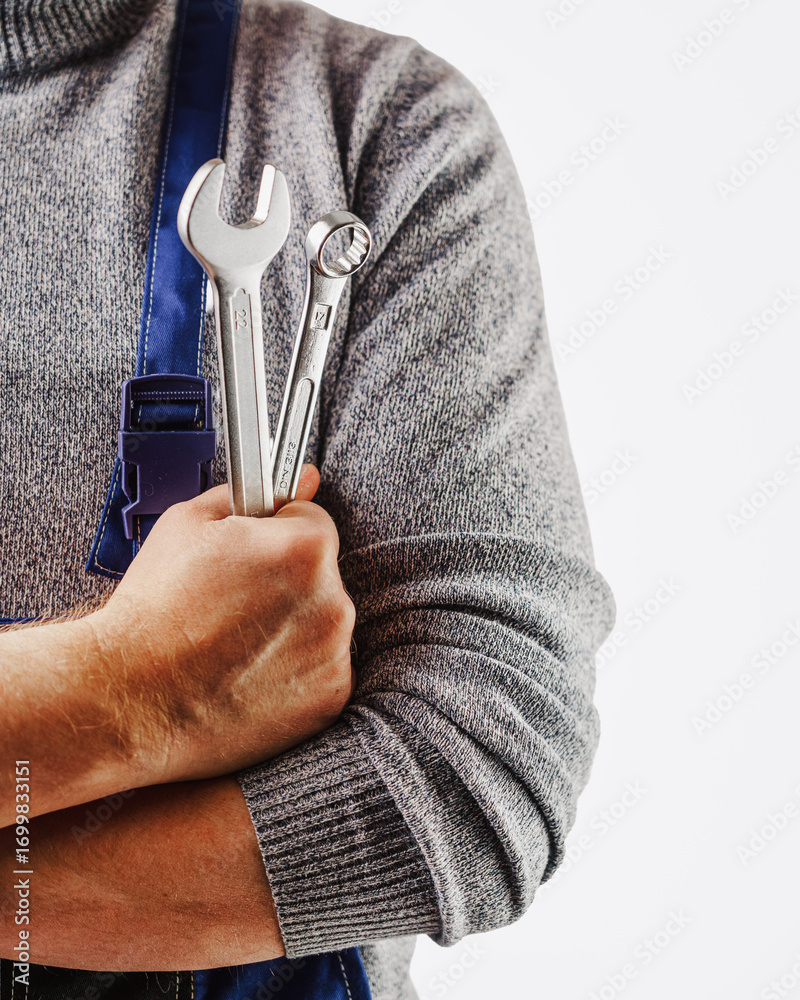 tire at repairing service garage background. Technician man replacing winter and summer tyre for safety road trip. Transportation and automotive maintenance concept #1699833151