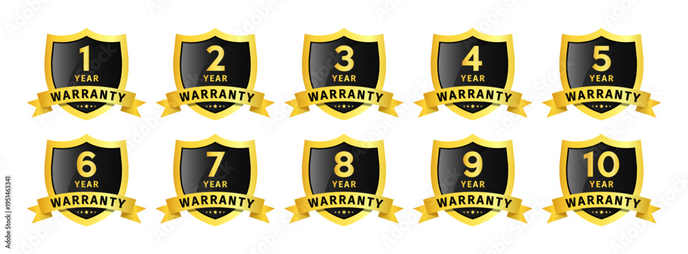 1 to 10 year warranty badge shield set premium guarantee label collection for product quality assurance protection vector illustration. #1951463341