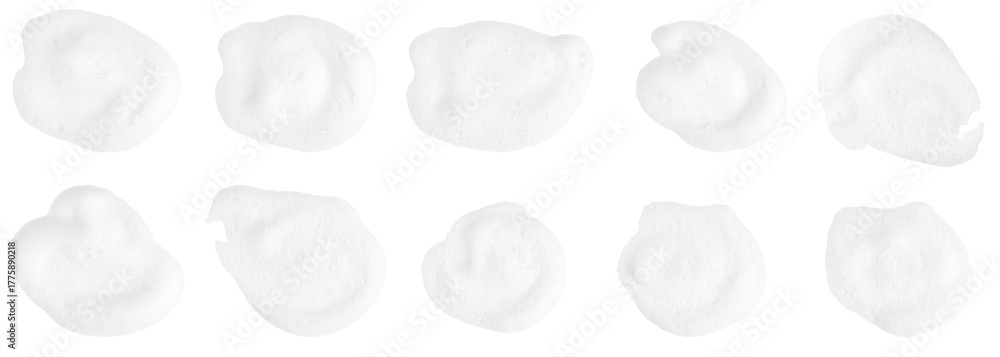 top view liquid white foam soap, shampoo, or shower gel. Abstract bubbles. isolated on black background. Clean concept, cosmetic visuals for a suds product. realistic soap texture with detailed bubble #1775890218