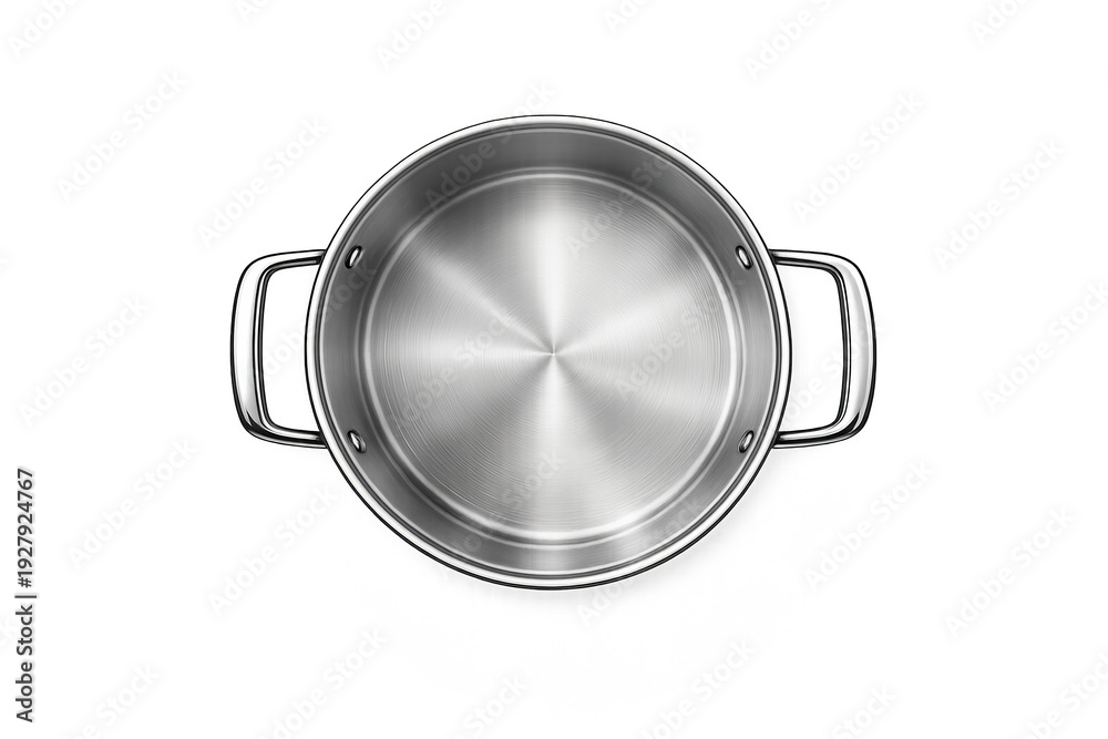 Top view of a clean, empty stainless steel cooking pot with brushed metal finish #1927924767