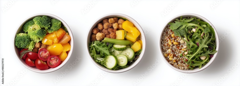 Top View of Healthy Lunch Bowls Isolated on Transparent Background #1883279731
