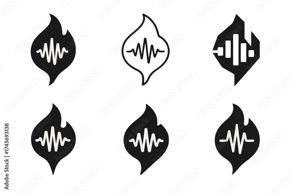 Torch of Expression. Freedom of expression. Set Logo of flame of speech: symbolic torch shaped as voice wave. harmonious logo variations of the same emblematic #1743693138