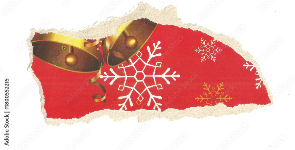 Torn Christmas paper scrap with bells and snowflake design #1800552215