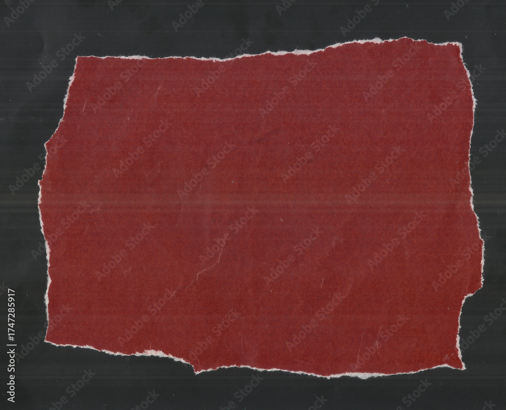 Torn Red Paper with Jagged White Fibrous Edges on Dark Background and Textured Surface #1747285917