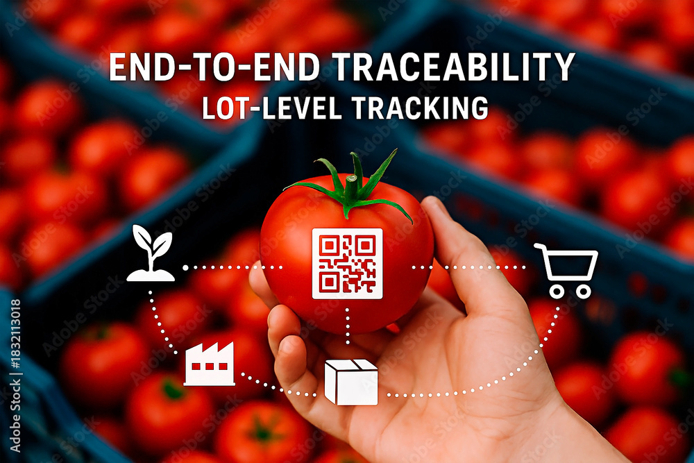 Traceability tomato product for the concept of supply chain and tracking. #1832113018