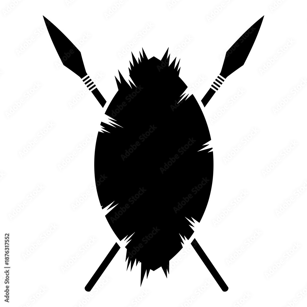 Traditional african warrior shield and crossed spears silhouette design vector #1876317552