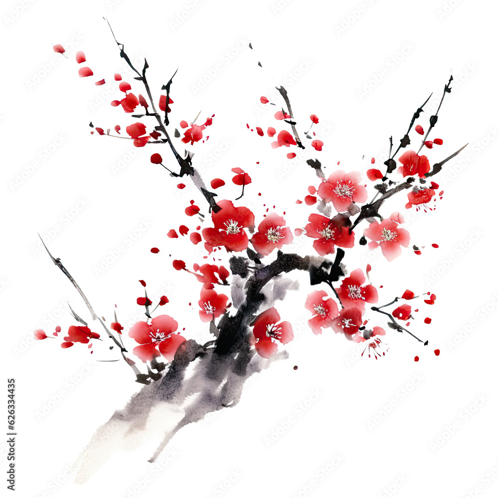 Traditional ink painting style sakura tree branches, Beautiful pink cherry blossom, spring flowers. #626334435