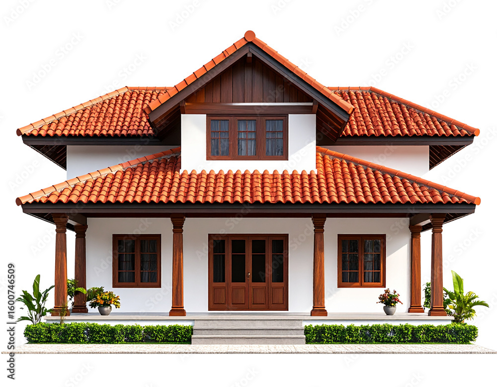 Traditional South Indian House with Tiled Roof and Courtyard, Frontal View, Transparent Background PNG #1600746509