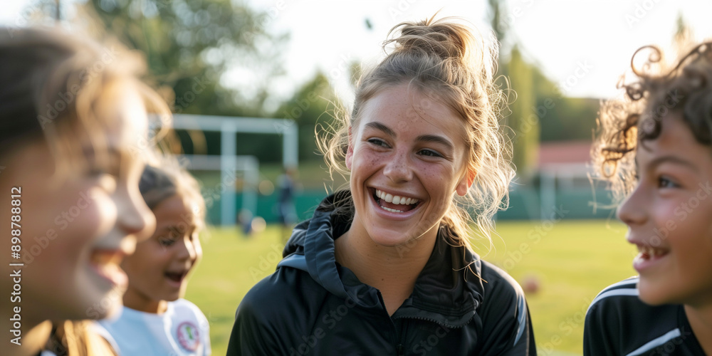 Trainerin mit Kindern auf dem Sportplatz #898788812
