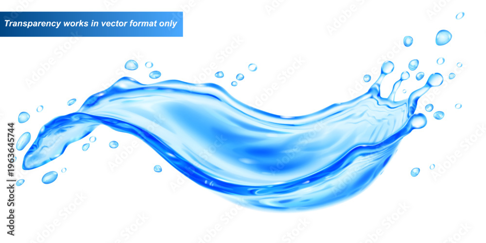 Translucent light blue wave with droplets isolated on white. Transparency only in vector format. #1963645744