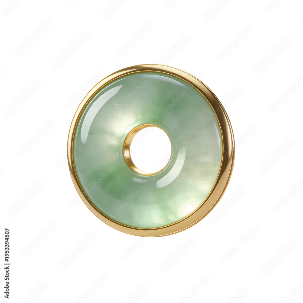 [Transparent Background PNG]Jade Donut Pendant with Gold Frame #1953394507