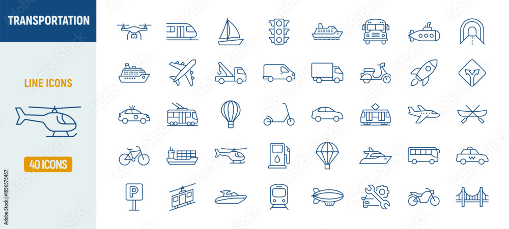 Transport bus truck train public line icons set. Motorcycle vehicle subway car bicycle plane outline symbol icon #1856575457