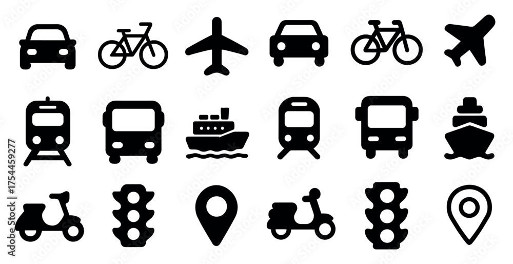 Transportation and travel icons set – solid, filled, transit and navigation symbols #1754459277