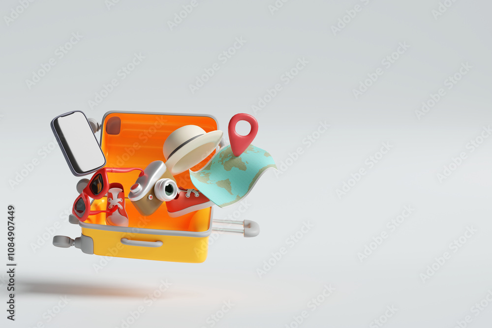 Travel elements on white background. Travel concept. 3d rendering #1084907449