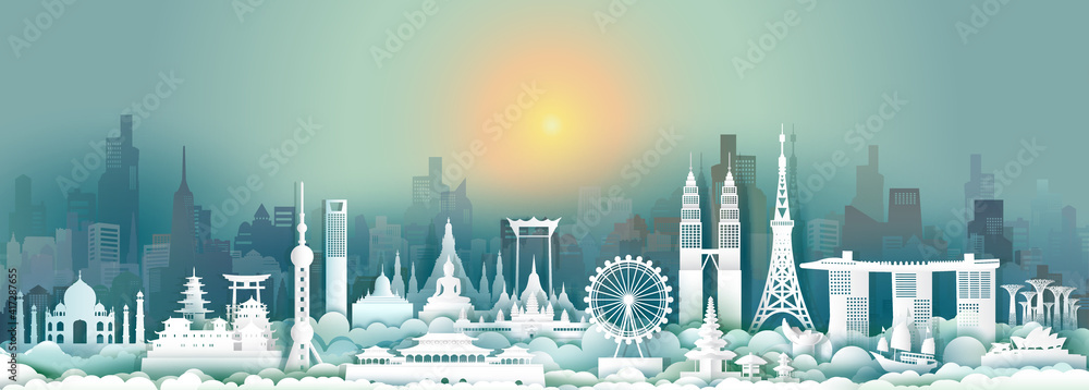 Travel landmark Asia with downtown cityscape skyline and asean tourism. #417287655