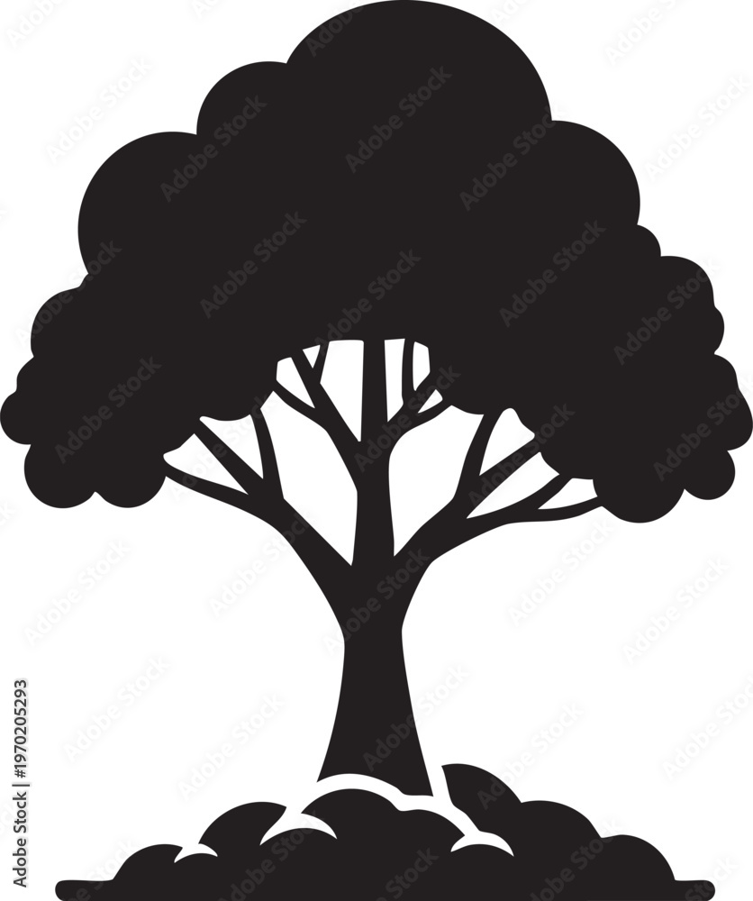 Tree Silhouette, Black Tree Icon, Vector Tree Illustration, Landscape Element #1970205293
