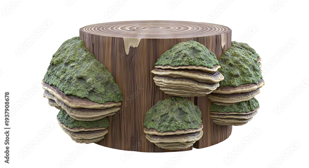 Tree Stump with Shelf Fungi and Moss #1937908678