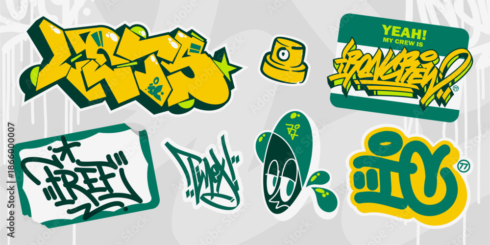 Trendy Abstract Urban Graffiti Style Stickers With Some Street Art Lettering Template Set #1866000007