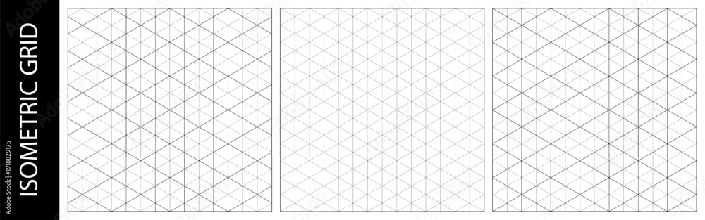 Triangle blueprint grid for surface background, cube geometric guide . Isometric pattern layout of angle line math, lattice empty template. Geometric graph of diamond pad, seamless perspective pattern #1918829175