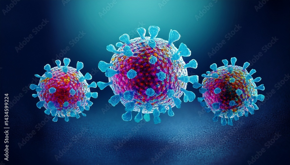 Triple virus outbreak or Tripledemic Covid Flu And RSV or respiratory syncytial virus with three pathogen cells dangerous infectious disease cells as a health concept #1434599224