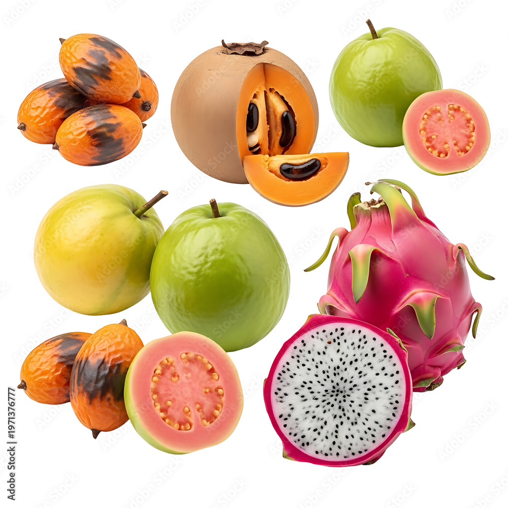 Tropical Fruit Collection: A vibrant assortment of exotic fruits showcases a variety of textures, colors, and unique appearances, tempting viewers with a taste of the tropics. #1971376777