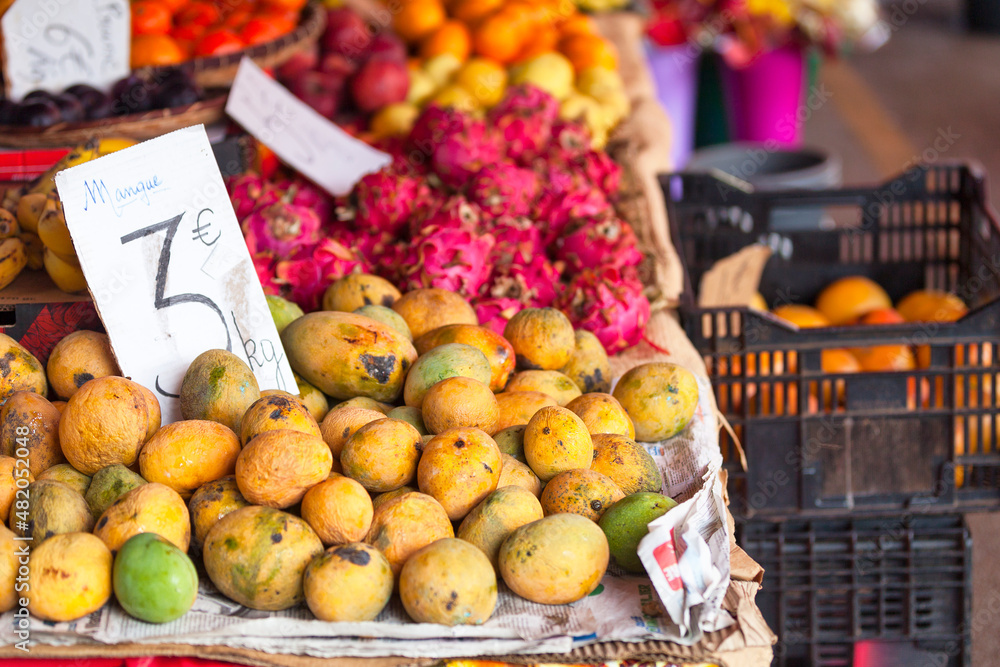 Tropical fruit for sale on market stall #482052048