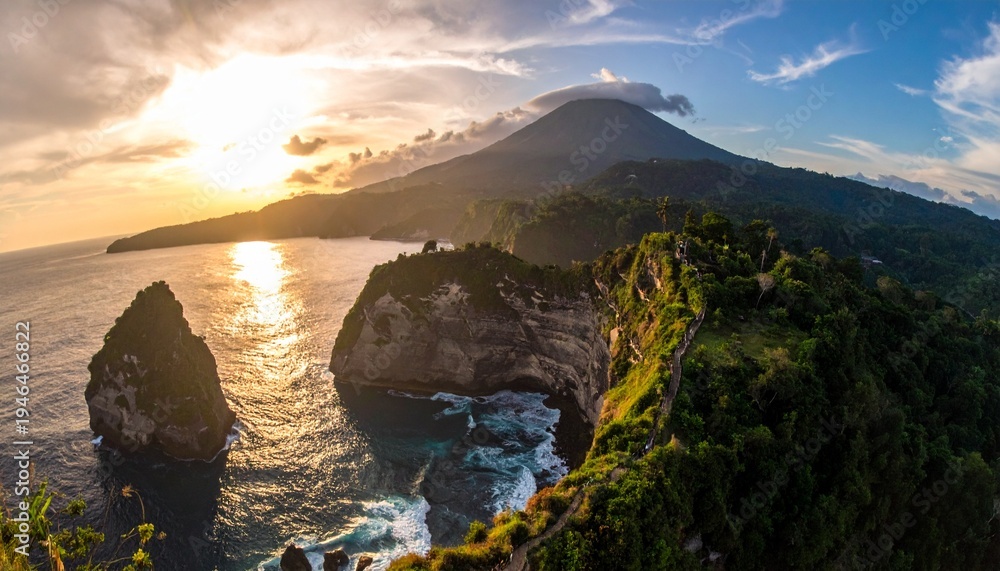 Tropical Island Cliffs at Sunset with Ocean. #1946466822