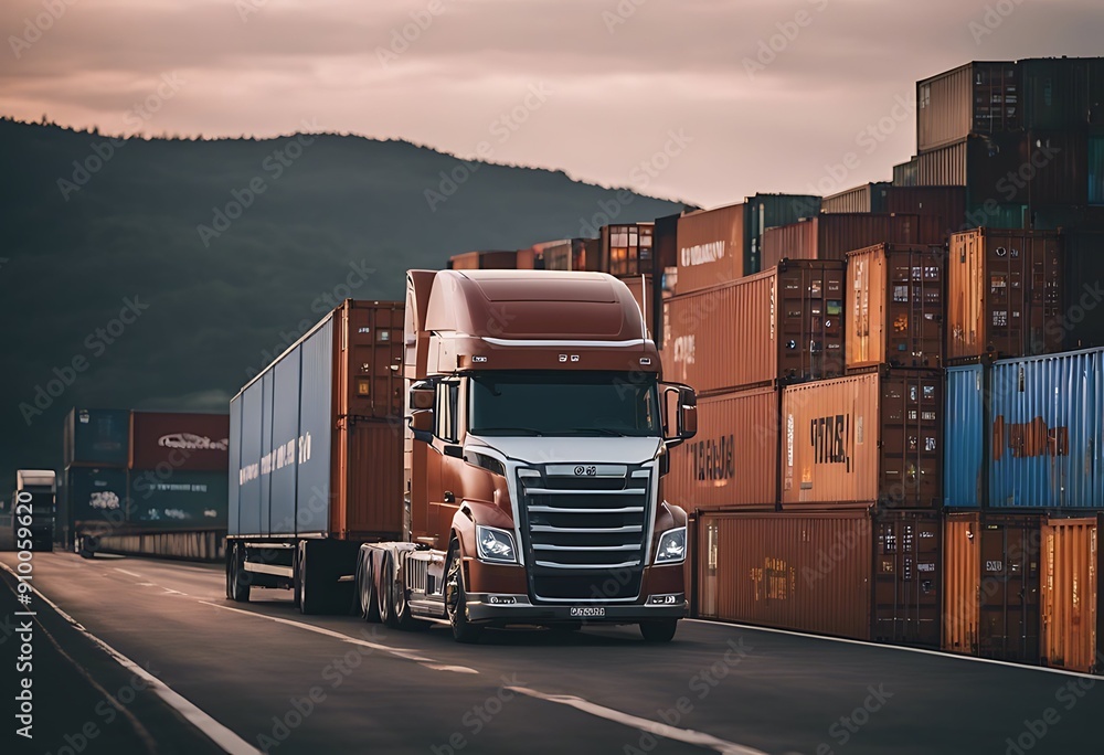 truck container bridge modern intermodal freight cargo road transportation highway trucking transport trailer lorry delivery traffic car business speed shipping industry #910059620