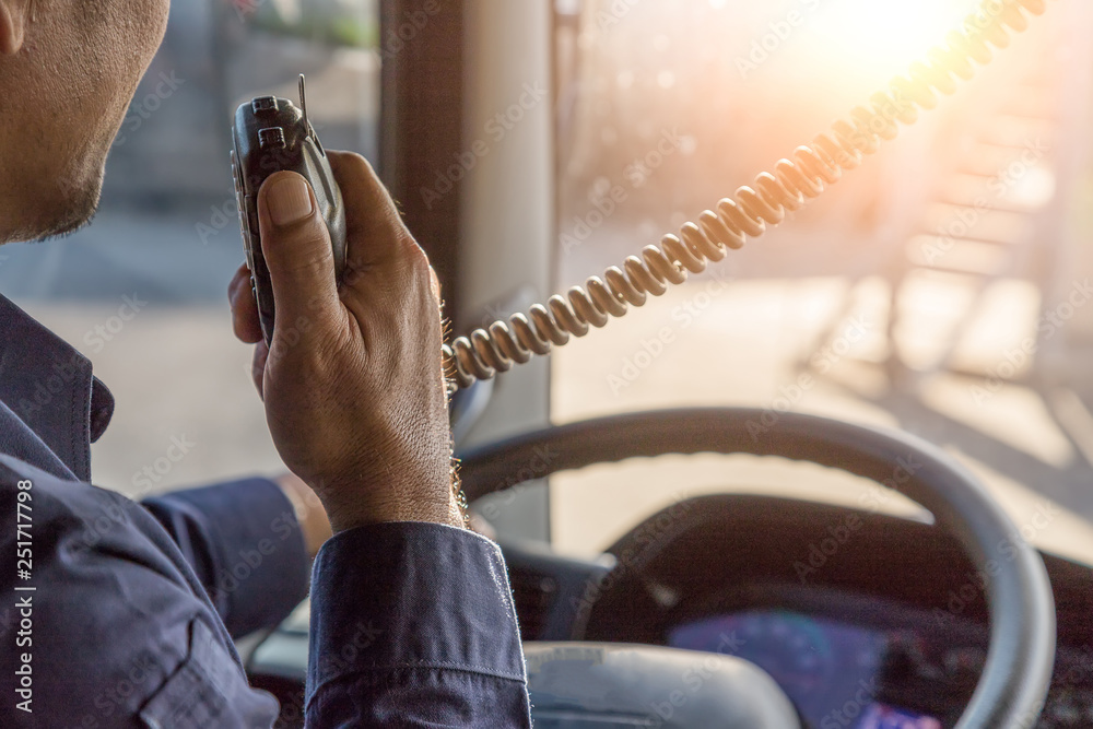 Truck Driver Making Talking Through Radio,Communication on the Highway,Concept transport on road,spot focus. #251717798