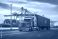 Truck trailer at cargo port terminal with cranes, containers #789641726