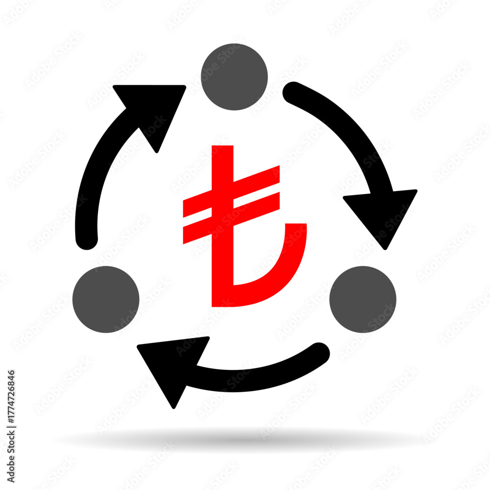 Turkish lira money change shadow icon, trade cash information web symbol, convert sign vector illustration . #1774726846