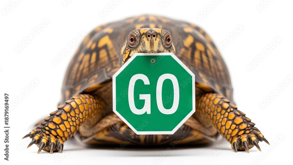 turtle holding a green go sign, road sign, on a white background, animal graphic #1879169497