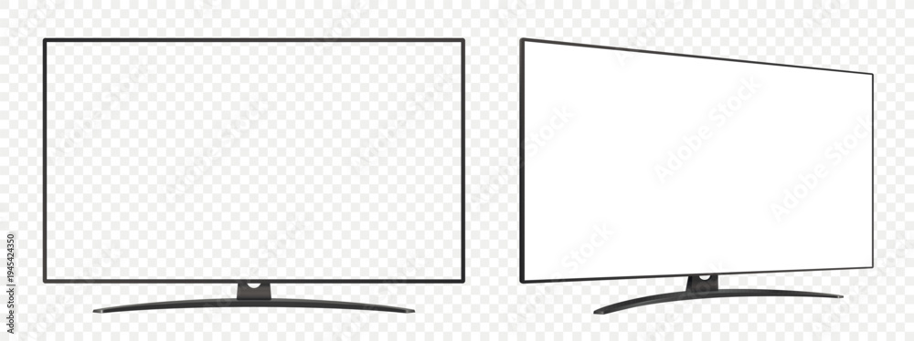TV flat screen mockup. Front and side view with white and empty screen on transparent background. #1945424350