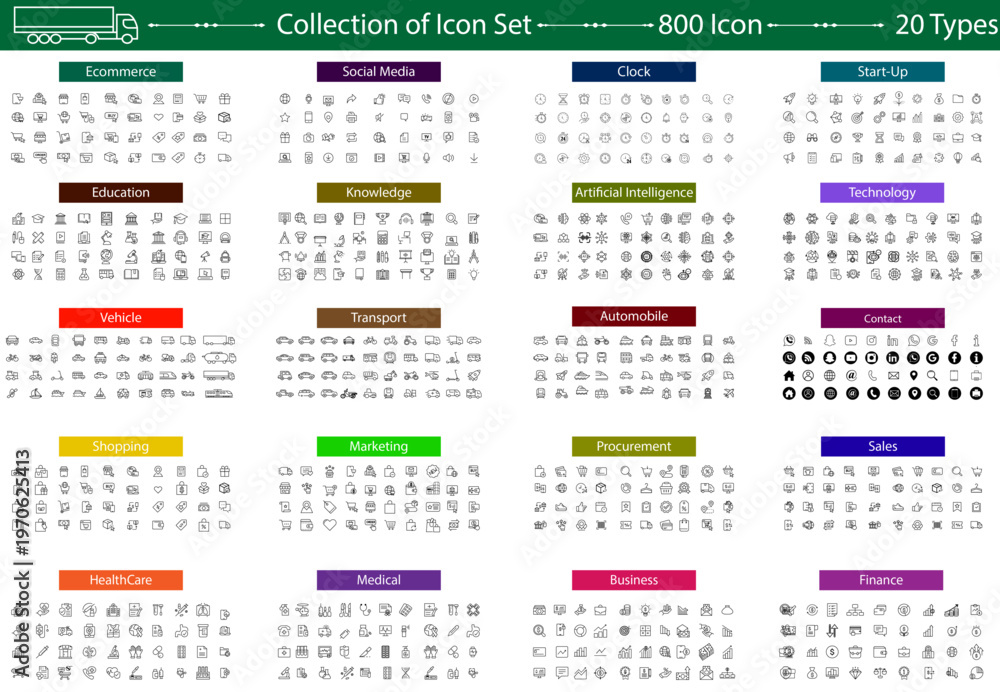 Twenty type icon set collection #1970625413