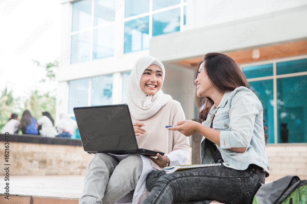 two asian college student using laptop #182163400