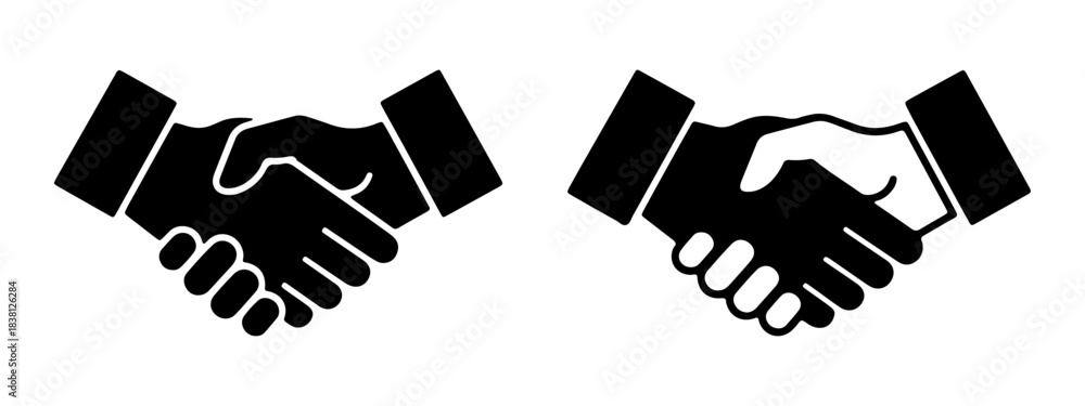 Two black silhouette icons of hands shaking, representing a handshake or agreement. #1838126284