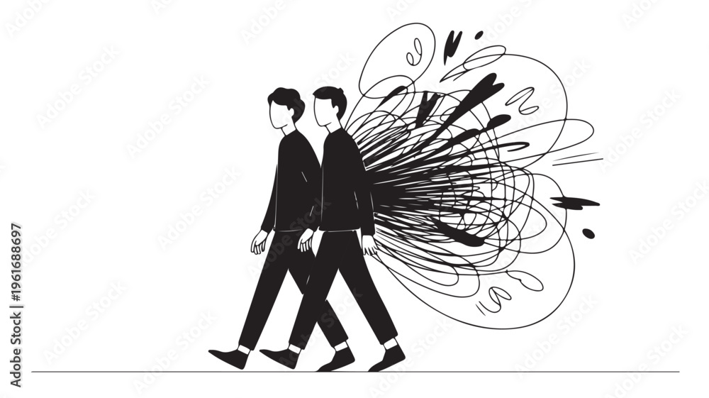 Two Businessmen Walking Together With Chaotic Lines For Teamwork And Stress Concepts #1961688697