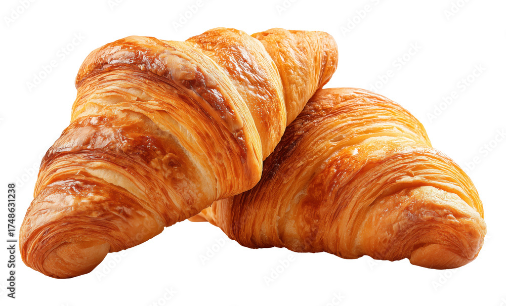 Two croissants with beautiful flaky texture isolated on transparent background #1748631238