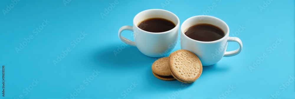 Two cups of coffee with biscuits on bright blue background #1916518398