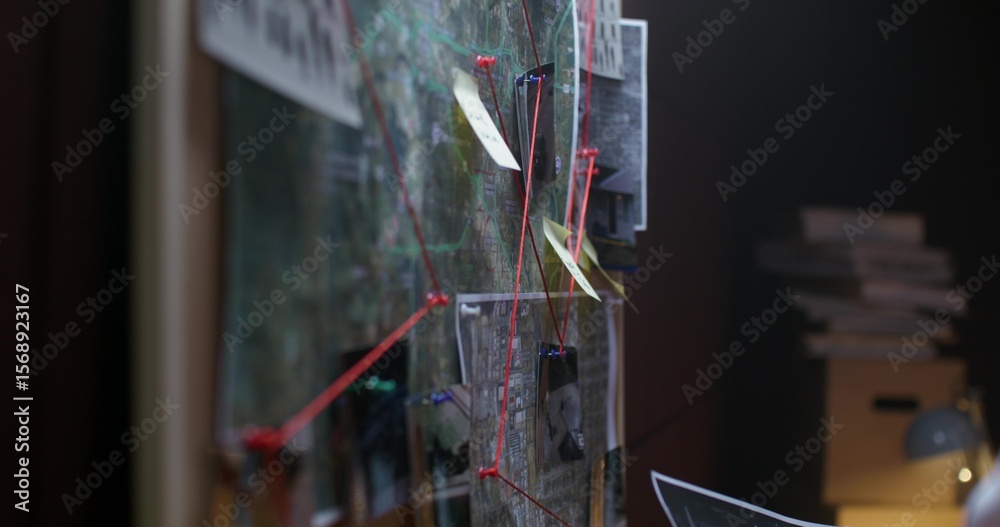 Two detective colleagues are examining the map in the office. Close-up of their hands, unrecognizable persons #1568923167