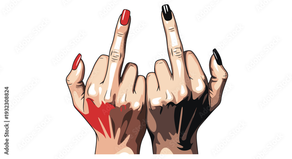 Two Hands Giving Middle Finger, Red and Black Nails, Vector Illustration #1932308824