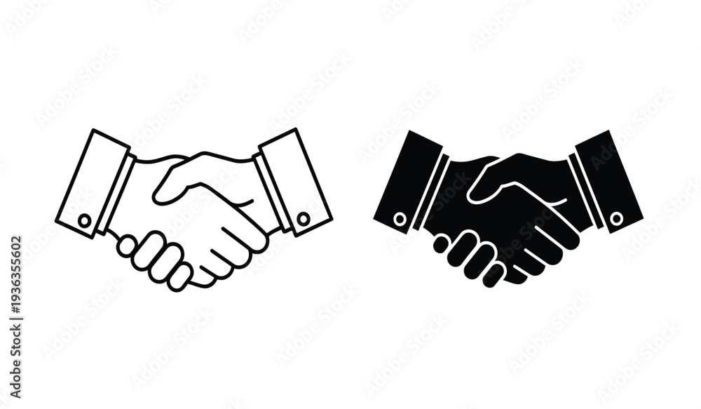 Two hands shaking in black and white line art style for business or partnership concepts #1936355602