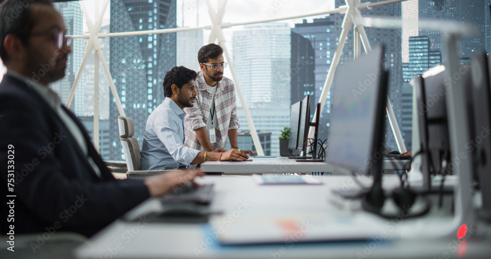 Two Indian Colleagues Having a Conversation While Busy Working on a Business Project. Software Engineer Talking with a Project Manager During a Meeting. Teamwork in a Modern Corporate Office #753133029