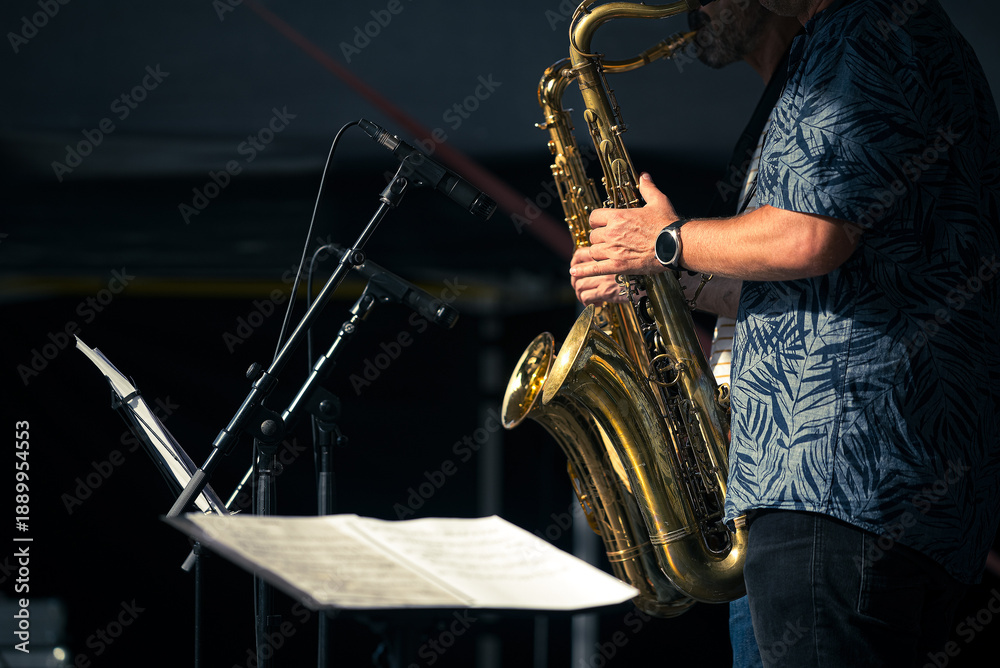 Two musicians playing saxophones #1889954553
