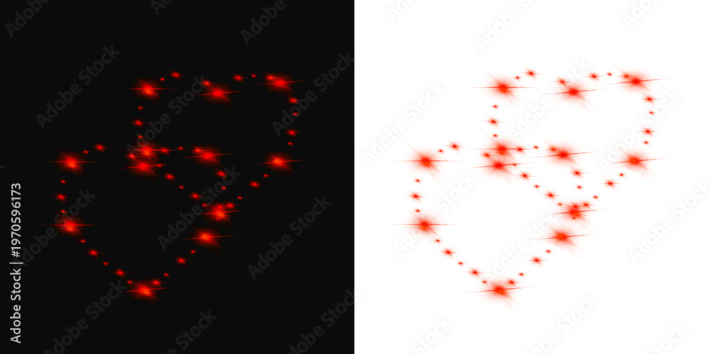 Two Red Heart Shaped Sparkles Floating, Black and Transparent Background; Romantic Overlay; PNG #1970596173