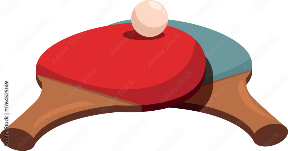 Two table tennis rackets holding a ping pong ball on white background #1764525149