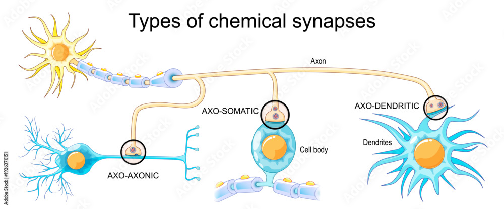 Types of chemical synapses. Neural communication. Transmission of the nerve signal between neurons #1926370151